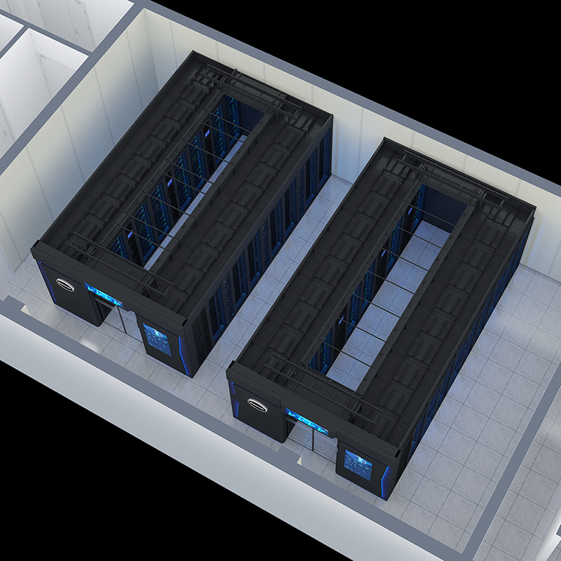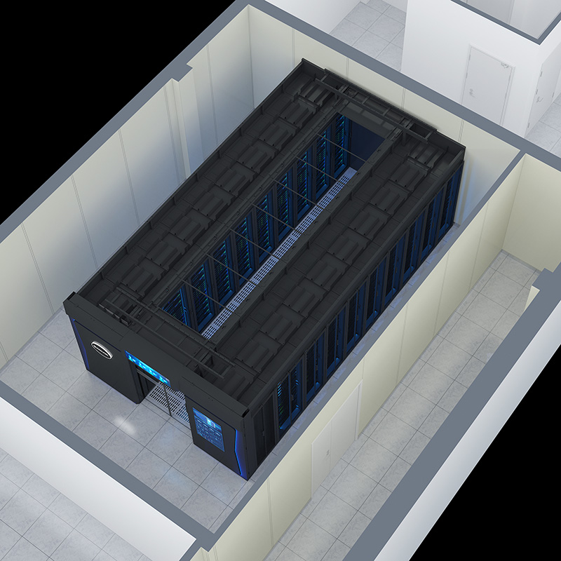It can also be configured as a hot and cold aisle data center to further improve cooling performance and energy utilization.
